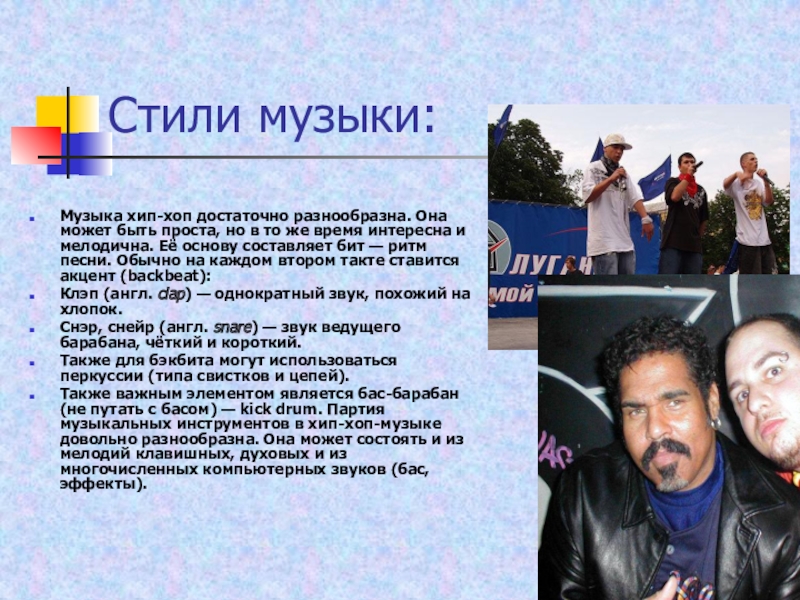 Слайд 12Стили музыки: