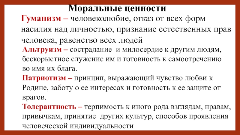 Альтруизм – сострадание и милосердие к другим людям, бескорыстное служение им и готовность к самоотречению во имя их блага.