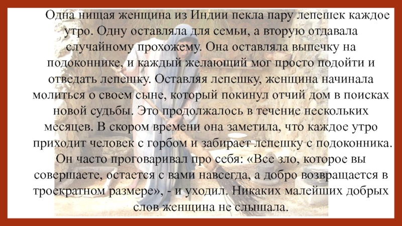 Сын увидел это и удивился : отец ты что, с ума сошел — он нам помои на порог положил, а ты ему в ответ — лучшие яблоки!