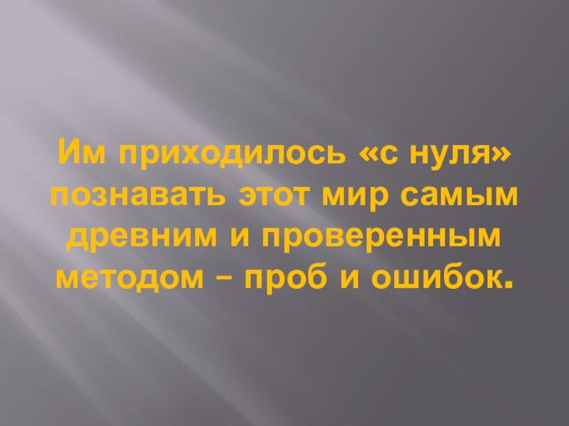 Слайд 10Им приходилось «с нуля» познавать этот мир самым древним и проверенным