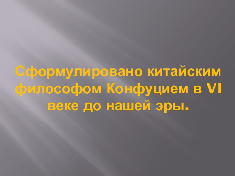 Слайд 26Сформулировано китайским философом Конфуцием в VI веке до нашей эры.