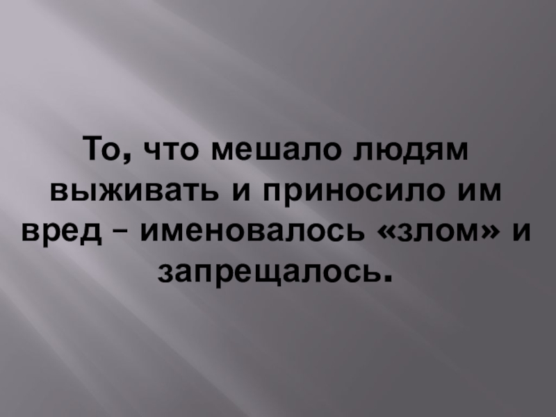 То, что мешало людям выживать и приносило им вред – именовалось «злом» и запрещалось.