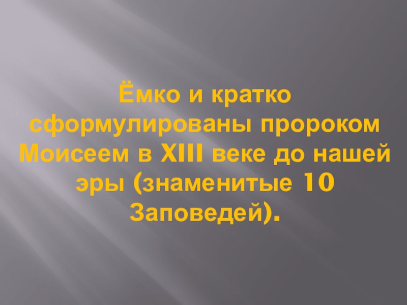 Слайд 29Ёмко и кратко сформулированы пророком Моисеем в XIII веке до нашей