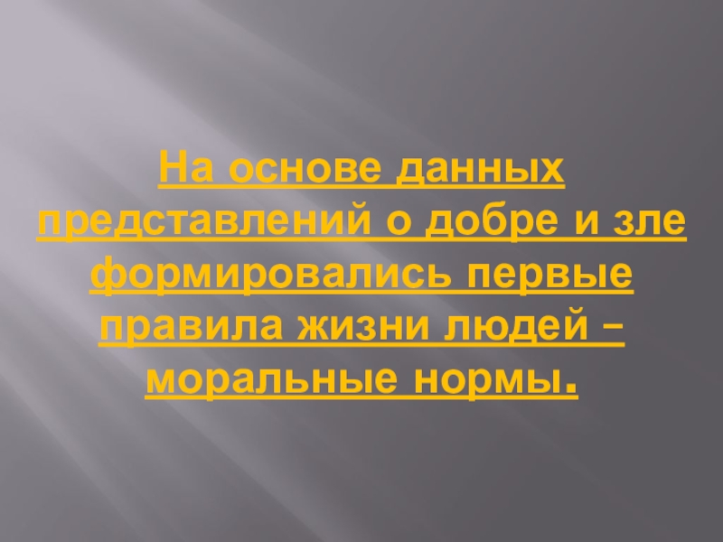Слайд 16На основе данных представлений о добре и зле формировались первые правила