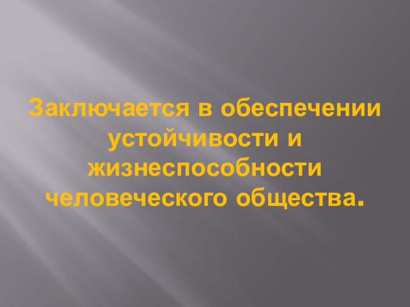 Слайд 22Заключается в обеспечении устойчивости и жизнеспособности человеческого общества.