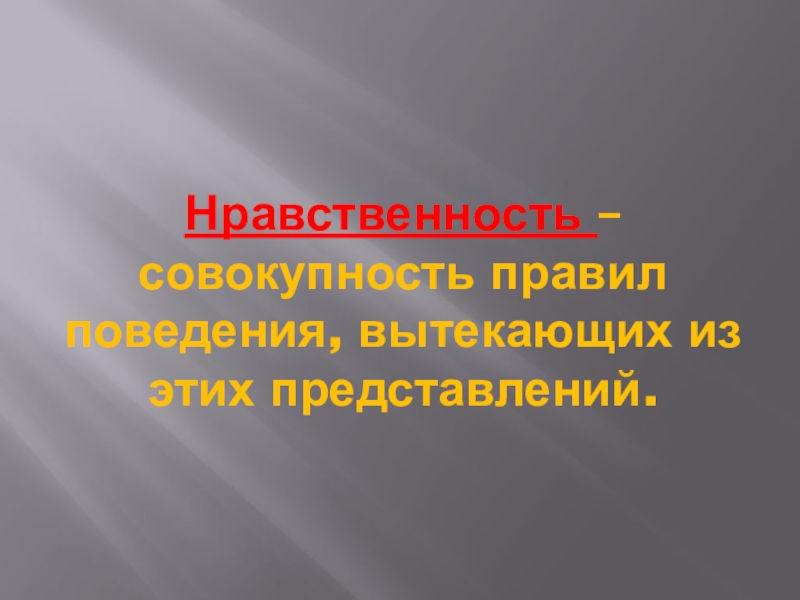 Слайд 5Нравственность – совокупность правил поведения, вытекающих из этих представлений.