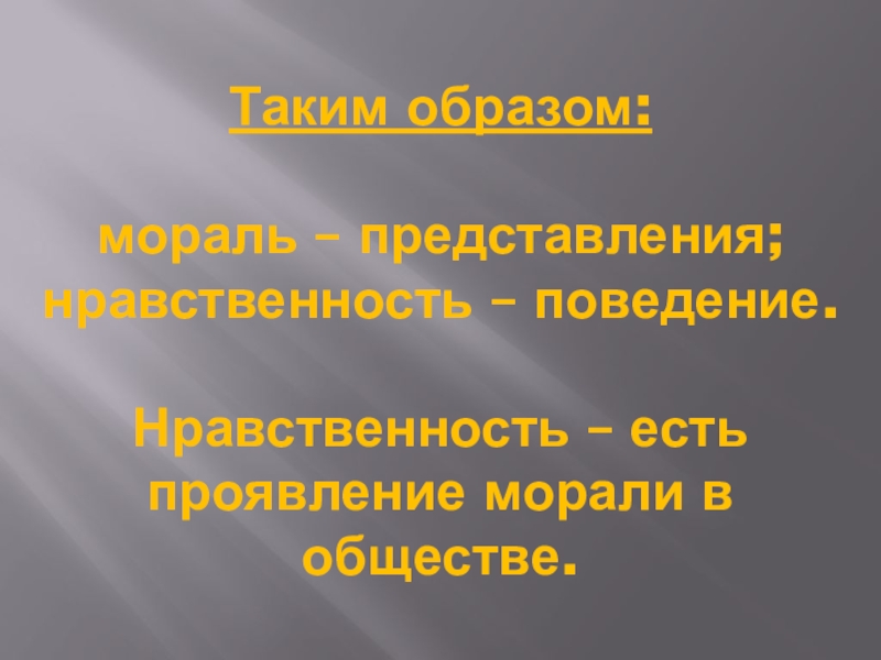Слайд 7Таким образом: мораль – представления; нравственность – поведение. Нравственность – есть проявление морали