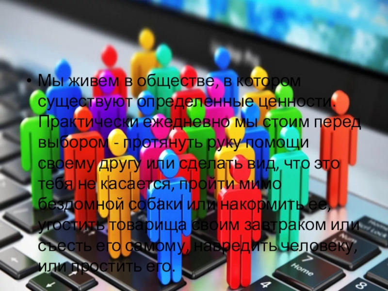 Слайд 4Мы живем в обществе, в котором существуют определенные ценности. Практически ежедневно