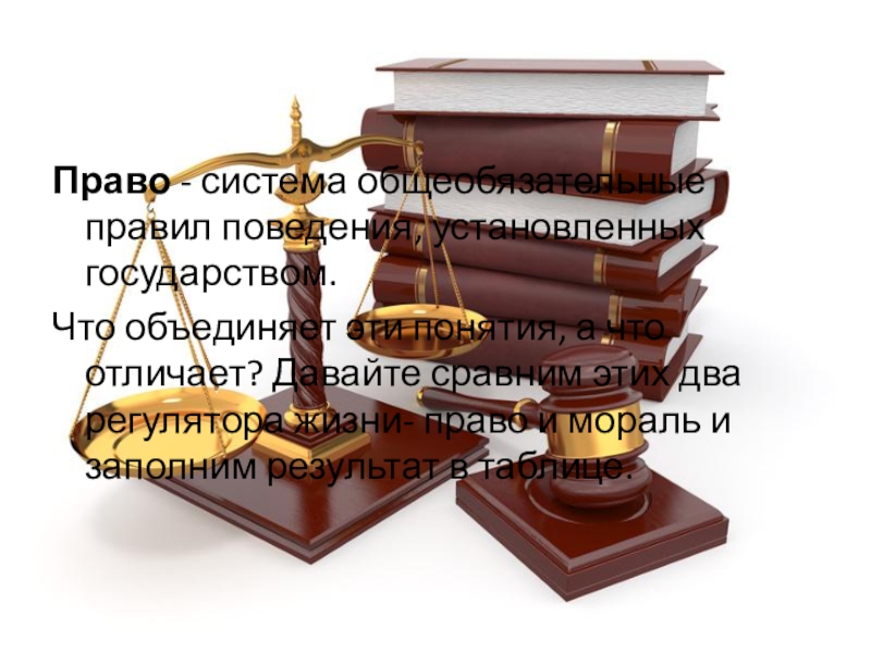 Слайд 9Право - система общеобязательные правил поведения, установленных государством.