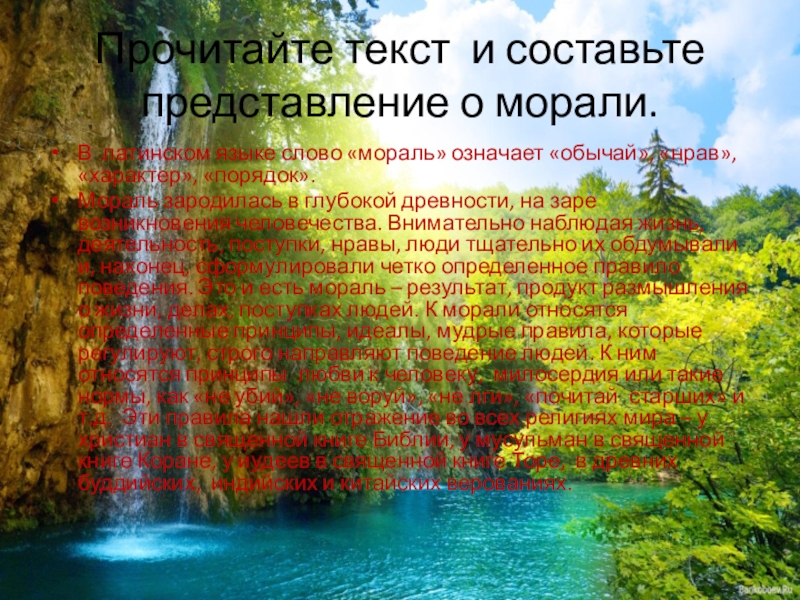 Слайд 7Прочитайте текст и составьте представление о морали.