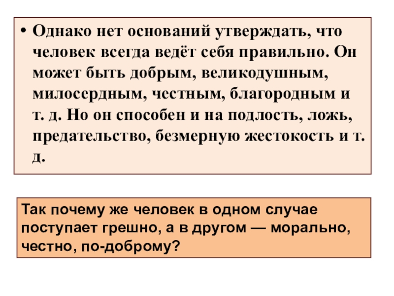 Так почему же человек в одном случае поступает грешно, а в другом — морально, честно, по-доброму?