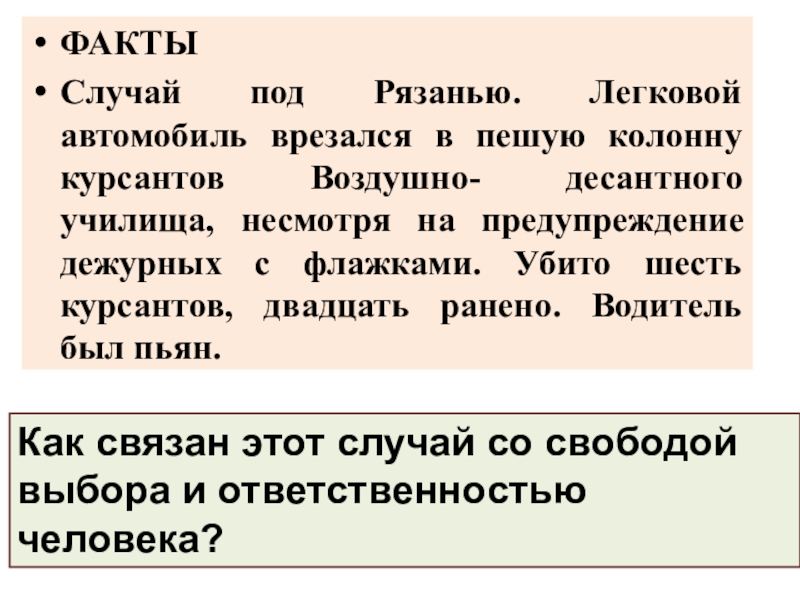 Как связан этот случай со свободой выбора и ответственностью человека?