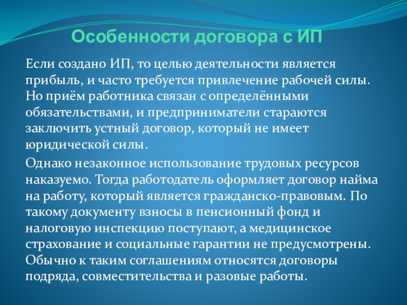 Слайд 5Но договор найма на работу является законным для выполнения определённых видов