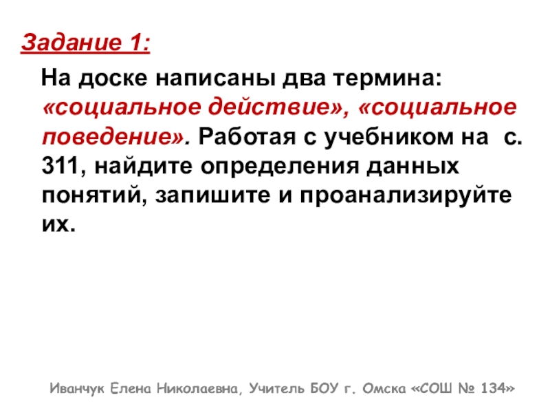 поведение». Работая с учебником на с. 311, найдите определения данных понятий, запишите и проанализируйте их.