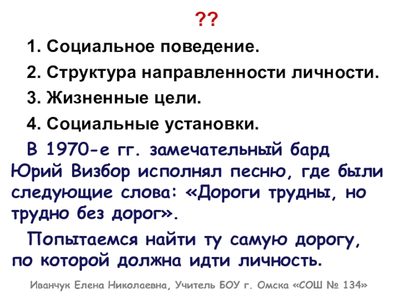 Попытаемся найти ту самую дорогу, по которой должна идти личность.
