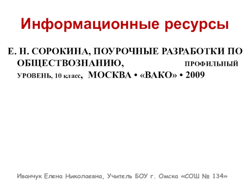 Е. Н. СОРОКИНА, ПОУРОЧНЫЕ РАЗРАБОТКИ ПО ОБЩЕСТВОЗНАНИЮ,