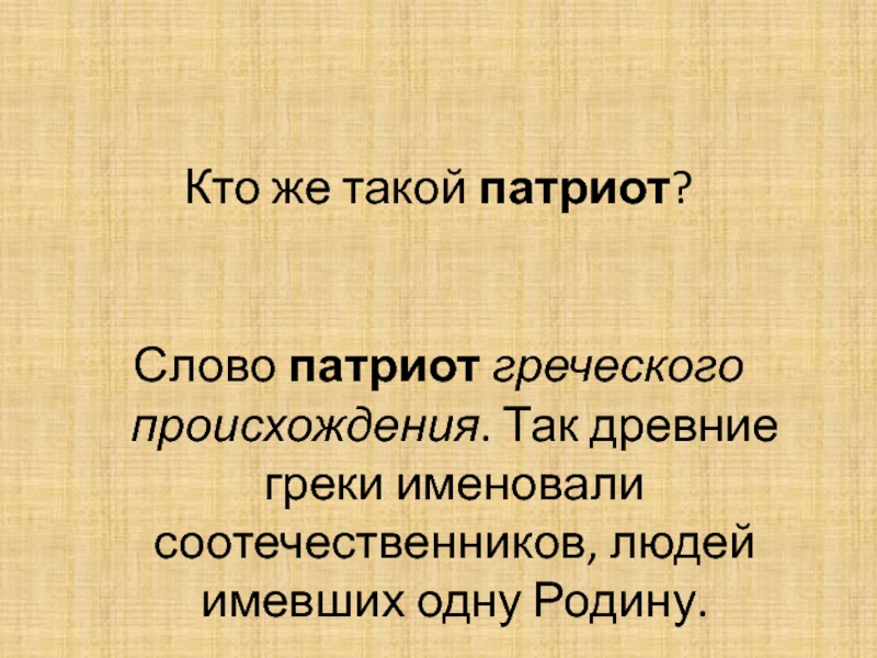Слайд 24Патриот – человек, любящий свое Отечество, преданный своему народу.
