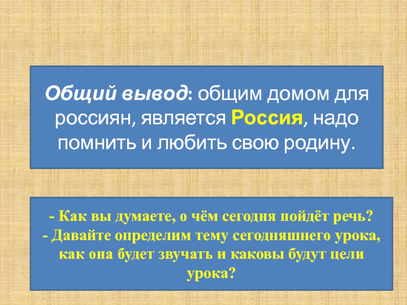 Слайд 4Общий вывод: общим домом для россиян, является Россия, надо помнить и