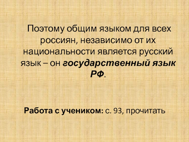 Слайд 22 Поэтому общим языком для всех россиян, независимо от их национальности является