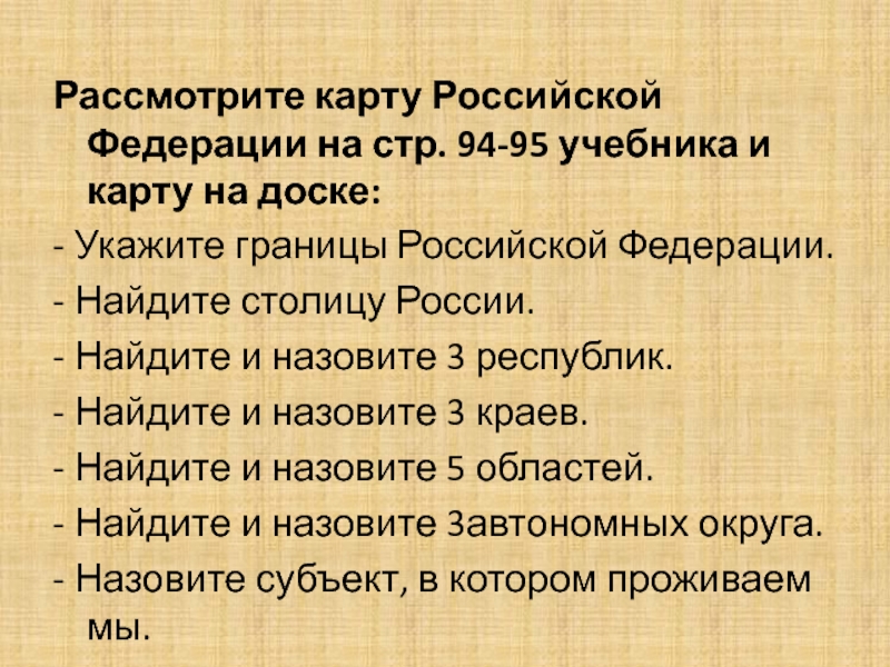 Слайд 15Рассмотрите карту Российской Федерации на стр. 94-95 учебника и карту на