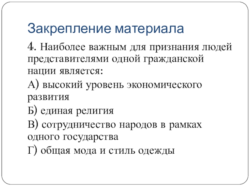 4. Наиболее важным для признания людей представителями одной гражданской нации