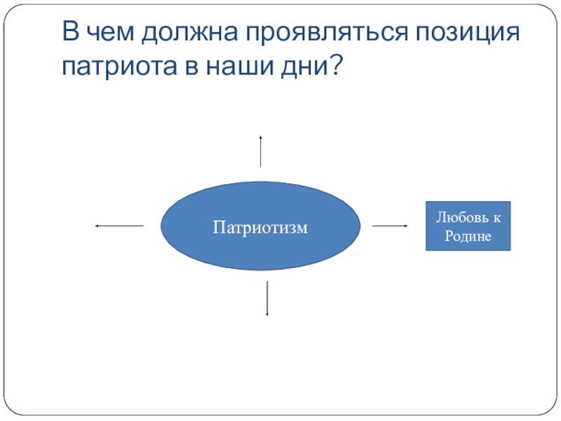 Слайд 20В чем должна проявляться позиция патриота в наши дни?