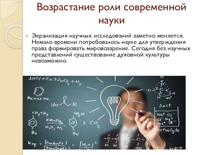 Возрастание роли современной наукиЭкранизация научных исследований заметно меняется. Немало времени потребовалось науке для утверждения права формировать мировоззрение.