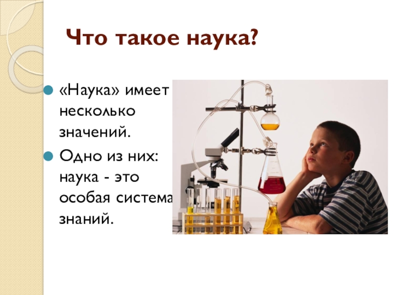 Что такое наука?«Наука» имеет несколько значений. Одно из них: наука - это особая система знаний.