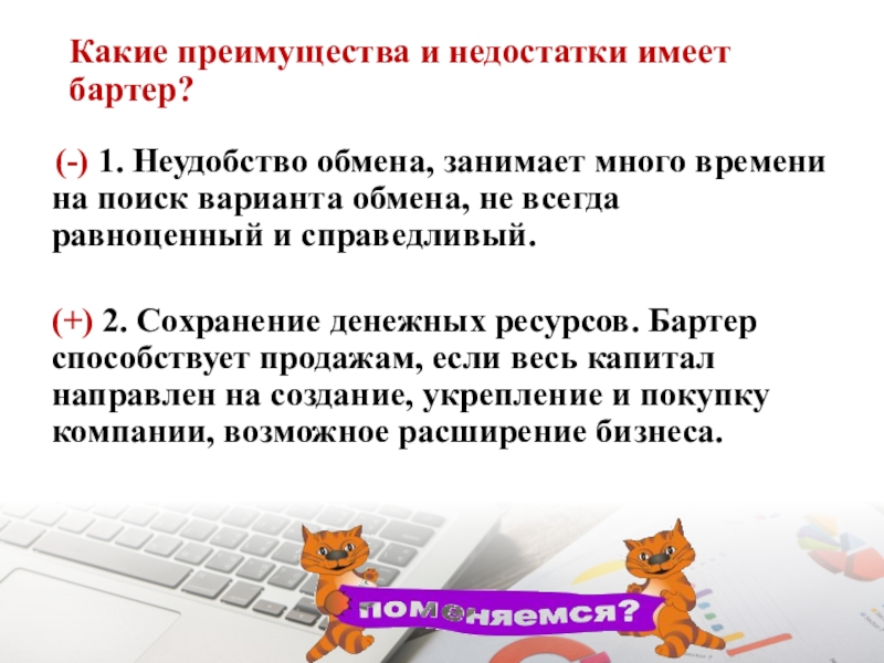 Бартер – натуральный обмен одной вещи на другую без денег.