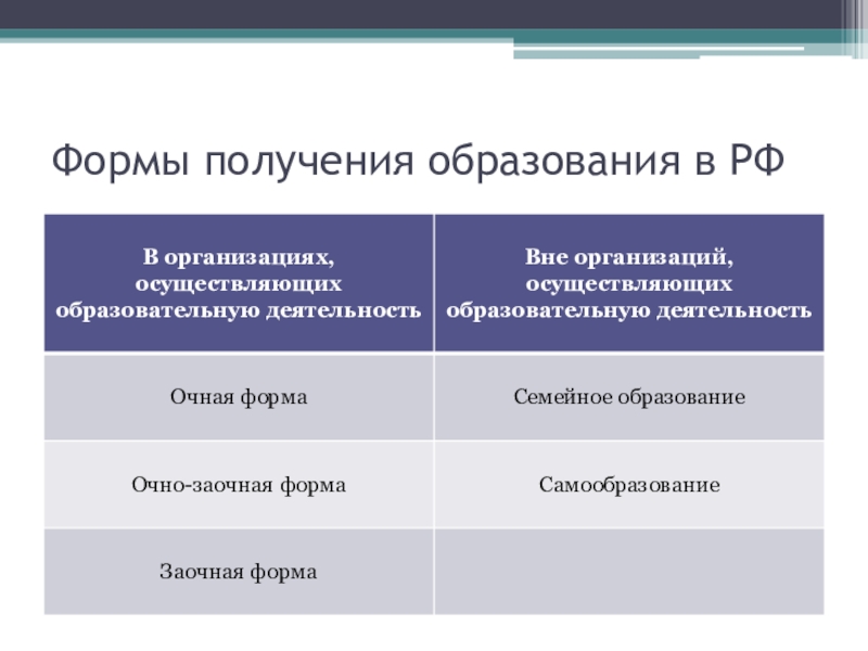 Слайд 7Формы получения образования в РФ