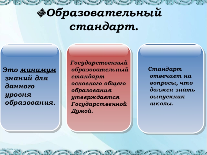 Стандарт отвечает на вопросы, что должен знать выпускник школы.