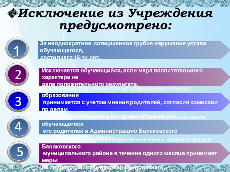 Исключение из Учреждения предусмотрено:
