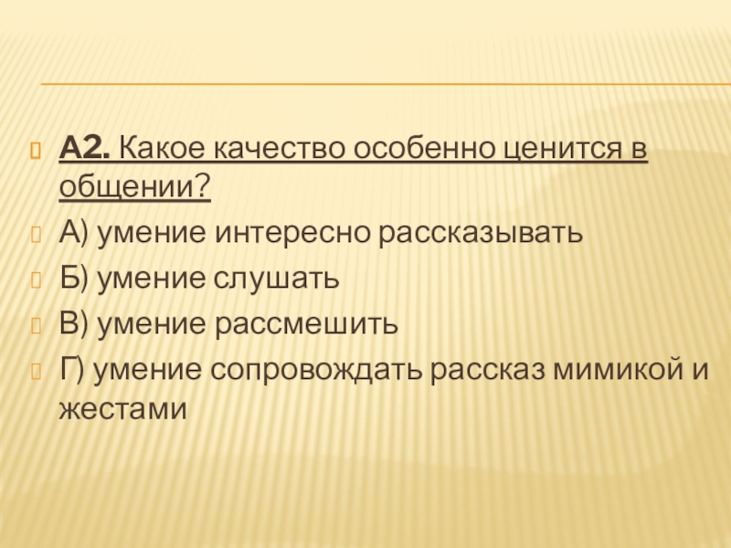 Слайд 14А2. Какое качество особенно ценится в общении?