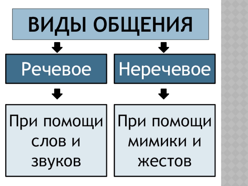 Виды общенияРечевоеНеречевоеПри помощи слов и звуковПри помощи мимики и жестов