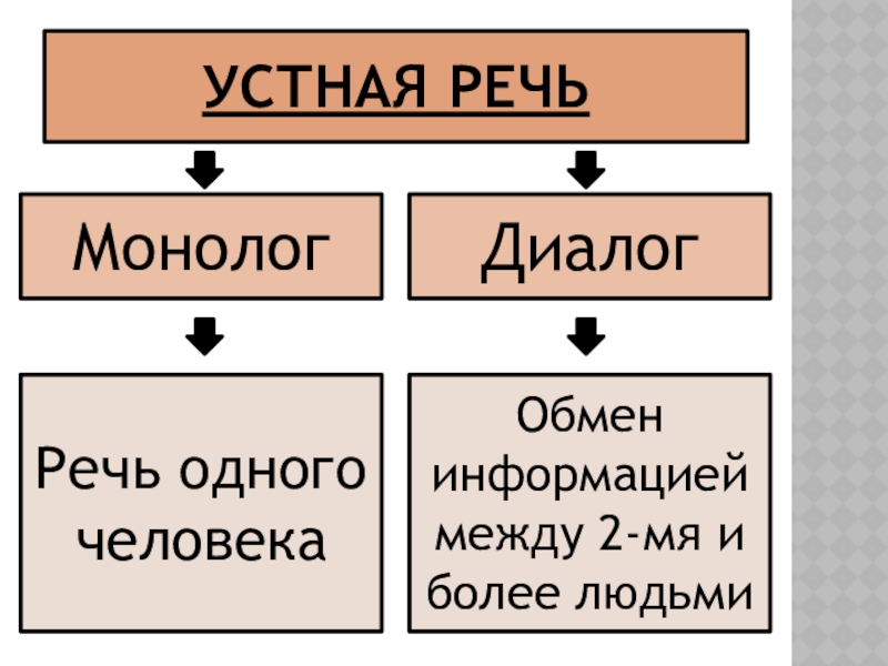 Устная речьМонолог Диалог Речь одного человекаОбмен информацией между 2-мя и более людьми