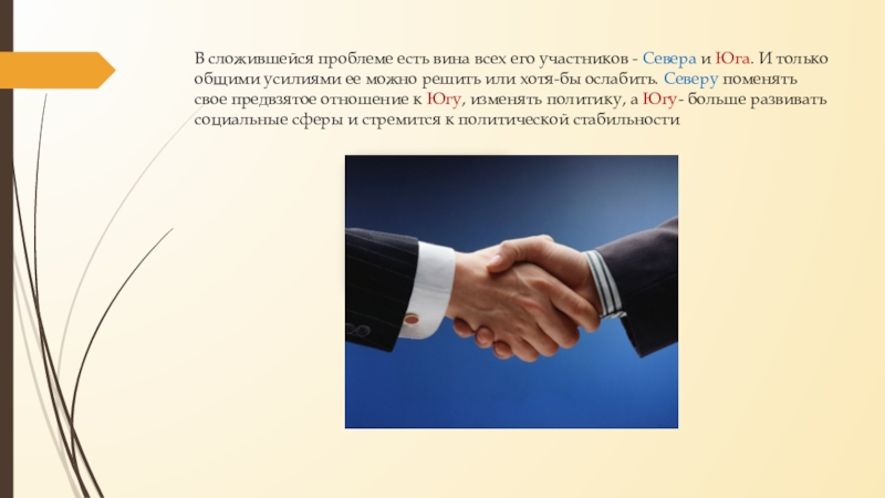 Слайд 12В сложившейся проблеме есть вина всех его участников - Севера и