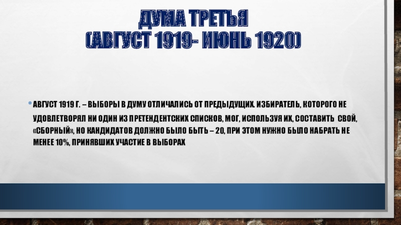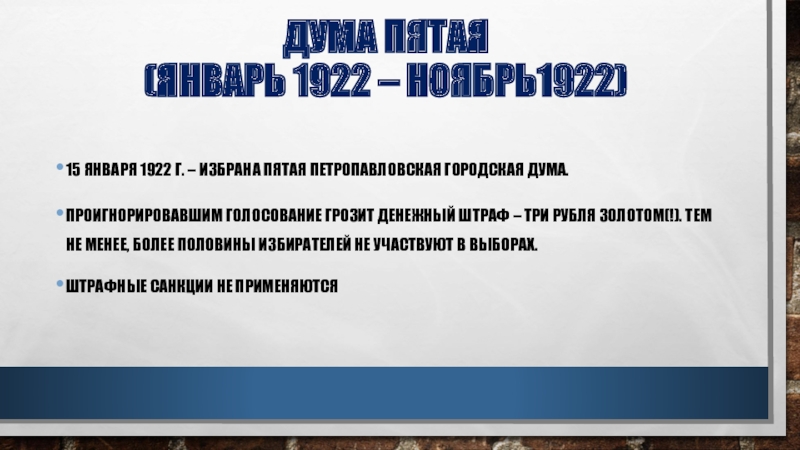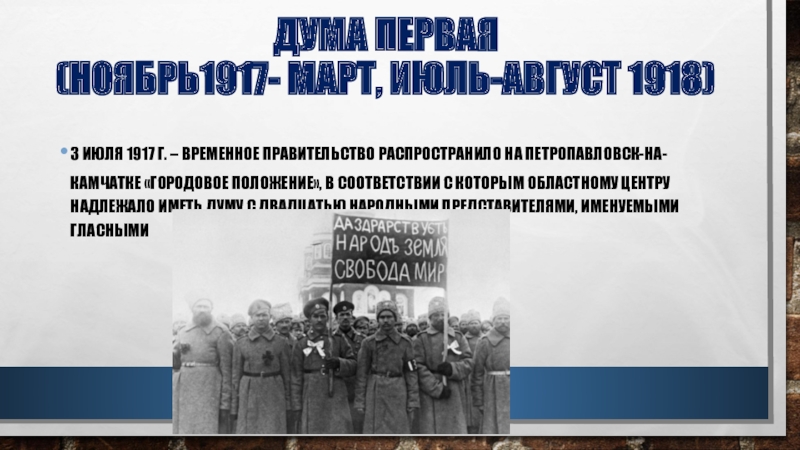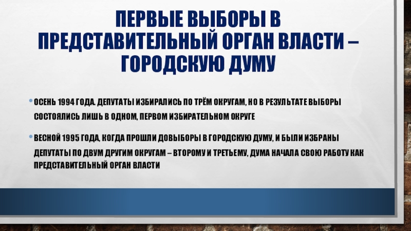 Слайд 13первые выборы в представительный орган власти – Городскую Думу