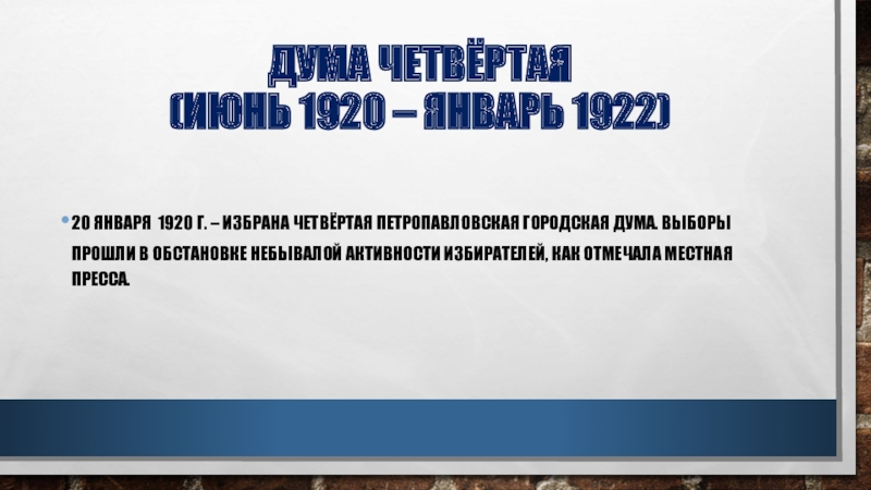 четвёртая Петропавловская Городская Дума. Выборы прошли в обстановке небывалой активности избирателей, как отмечала местная пресса.