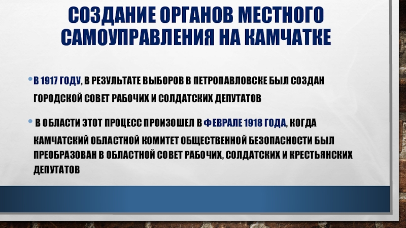 Слайд 7Создание органов местного самоуправления на Камчатке