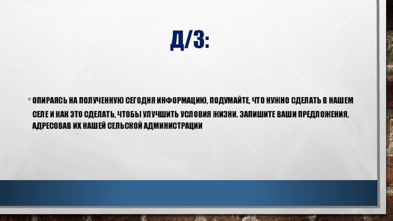 нашем селе и как это сделать, чтобы улучшить условия жизни. Запишите ваши предложения, адресовав их нашей сельской администрации