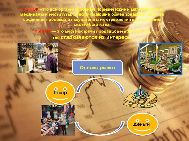 РЫНОК — это место встречи продавцов и покупателей, где сталкиваются их интересы.