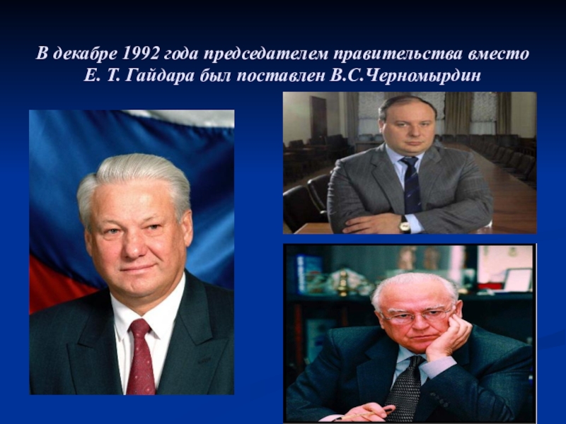 Слайд 4В декабре 1992 года председателем правительства вместо Е. Т. Гайдара был