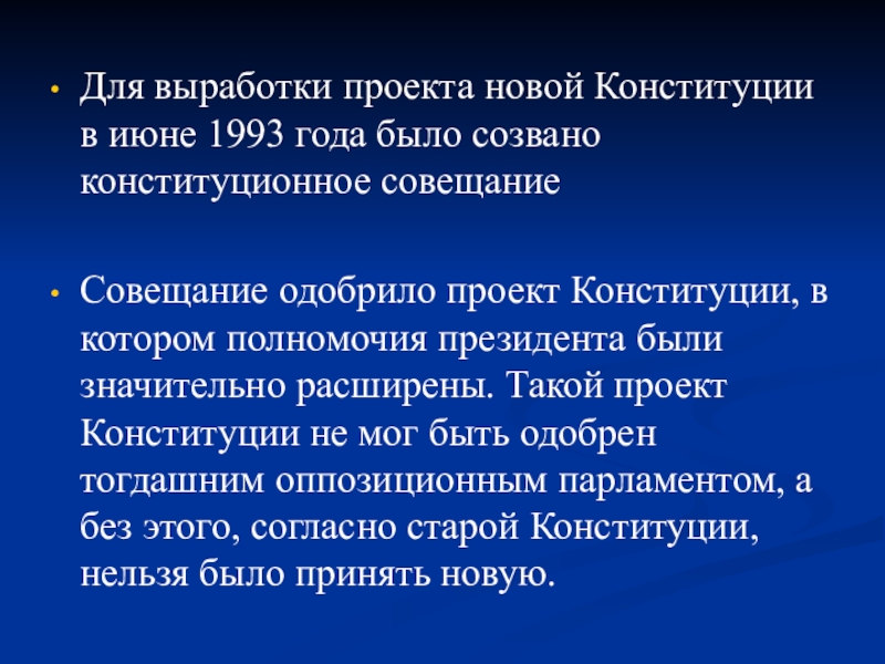 Слайд 5Для выработки проекта новой Конституции в июне 1993 года было созвано