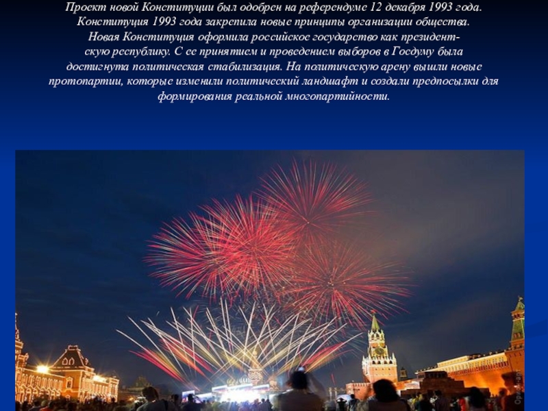 Слайд 11Проект новой Конституции был одобрен на референдуме 12 декабря 1993 года.