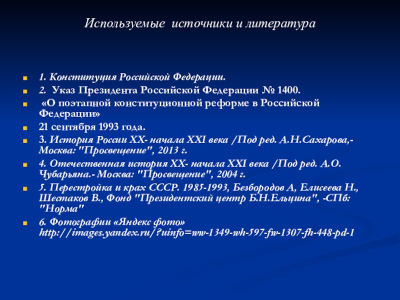 Слайд 621сентября 1993 года президент издал Указ № 1400, по которому он