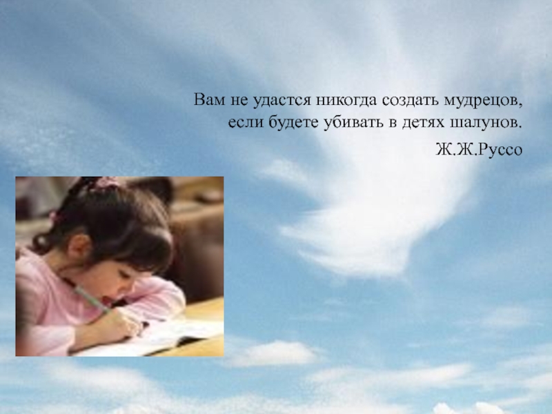 Вам не удастся никогда создать мудрецов,если будете убивать в детях шалунов.Ж.Ж.Руссо