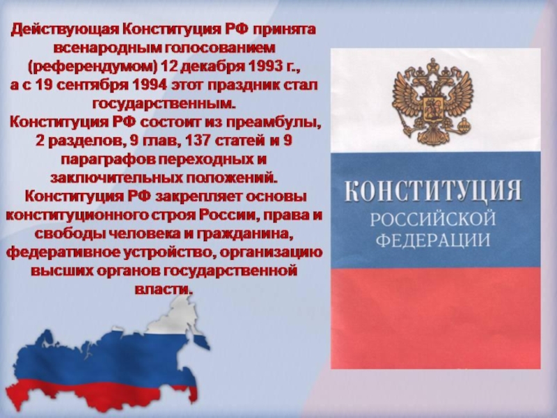 Слайд 7Самым главным законом нашей страны – является Конституция России от 12