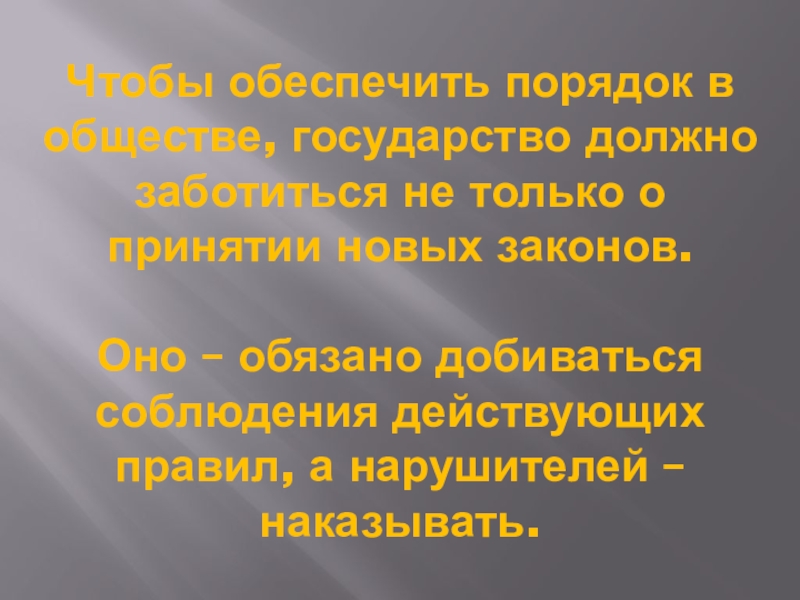 Слайд 15Чтобы обеспечить порядок в обществе, государство должно заботиться не только о