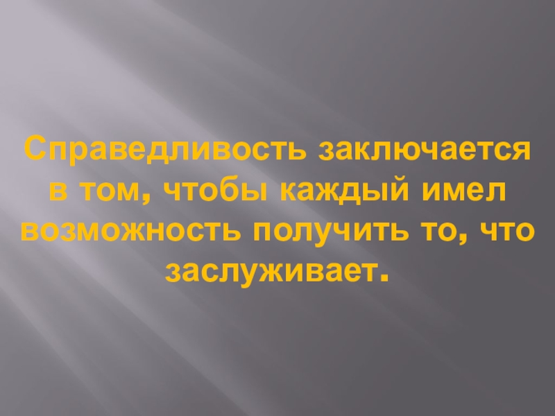 Слайд 20Справедливость заключается в том, чтобы каждый имел возможность получить то, что