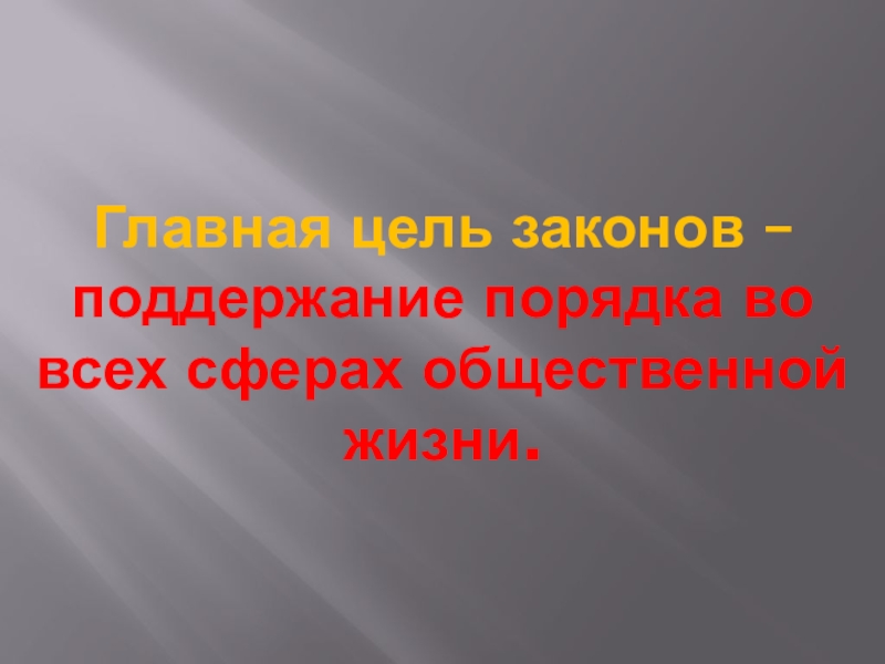 Слайд 9Главная цель законов – поддержание порядка во всех сферах общественной жизни.